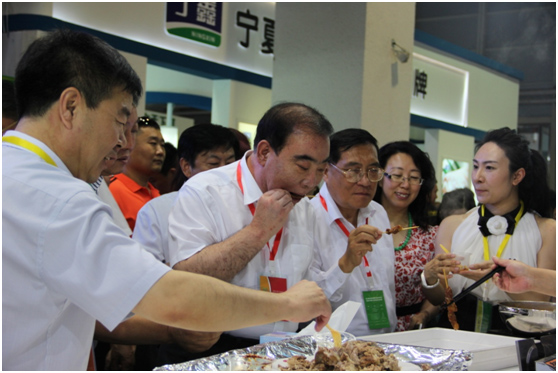參會領(lǐng)導(dǎo)巡展并品嘗參展羊肉